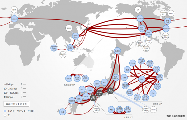 国外ですと、アメリカ、香港、シンガポール、ロンドンにサービス提供設備および他ASとの接続を持っています。