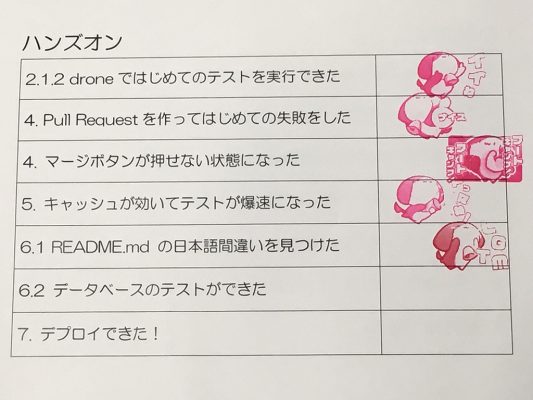 そこでハンズオンの課題をクリアするとバリーくんの 物理スタンプ をTAからもらえるようにするなど、新しい工夫をどんどん試していきました。